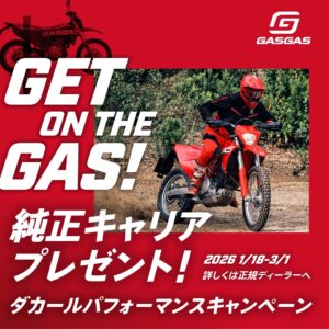 ダカールパフォーマンスキャンペーンのご案内 2026.01.05 ダカールラリーなどを走破した高い技術力から開発された下記モデルを対象にオーナーの所有感を満たすツアーパック、及び関連部品を提供する、【ダカールパフォーマンスキャンペーン】を実施致します!【キャンペーン実施期間】2026年1月12日~3月1日まで【キャンペーン内容】純正キャリアプレゼント【対象モデルと金額】ES 700 2024 ラゲッジキャリアセット 44,544円(税抜)